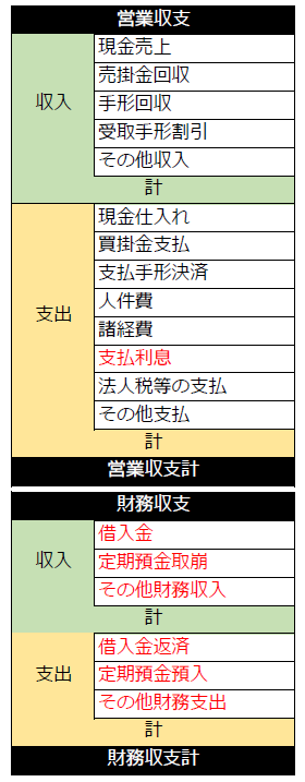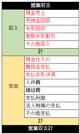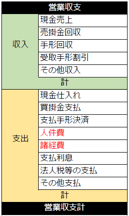 営業(経常)収支は、本業での資金収支を表します。資金繰り表のなかで最も重要なチェック項目です。