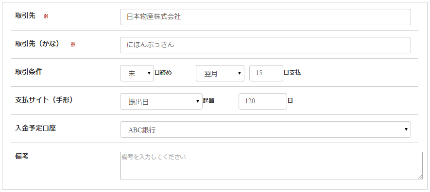 ※上図は資金繰りfelizでの取引先マスター設定例です。