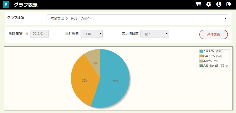 また、利益率改善のためには、支出の内訳を分析し、年度ごと、または集計期間を変えて推移を検証し、改善への将来予測を立てていきます。