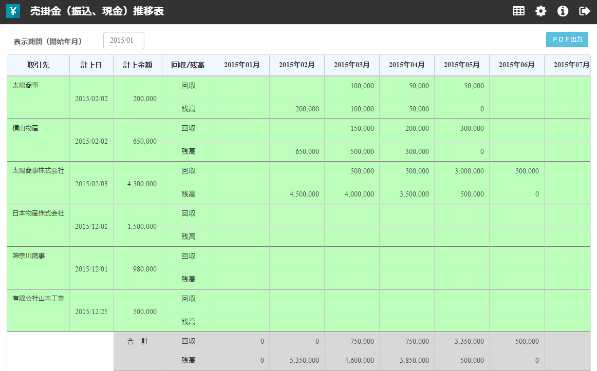 STEP1で整理したように、取引先別に設定したサイトを参照することで、現(預)金の増減を見ていきます。